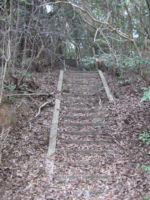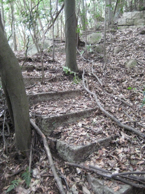 この石段路も初回踏査では通っていない部分だった。藪がきついので少し離れれば園路の存在自体が分からなくなる。