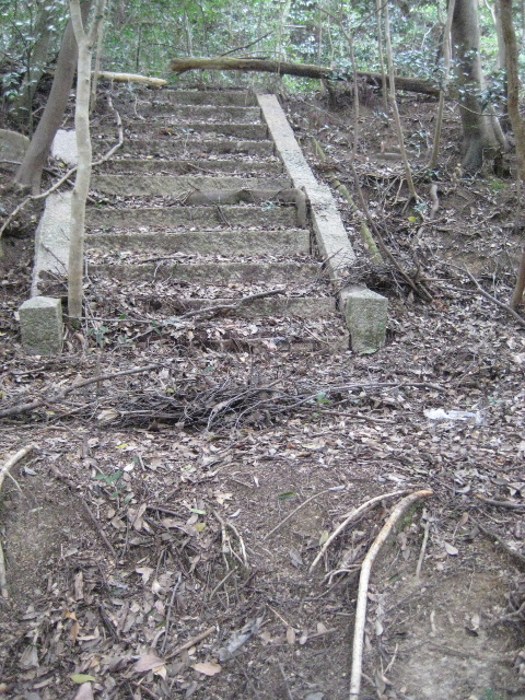 ここから近くのピークを目指す形で別の石段が伸びていた。