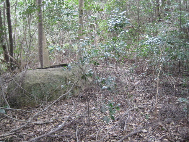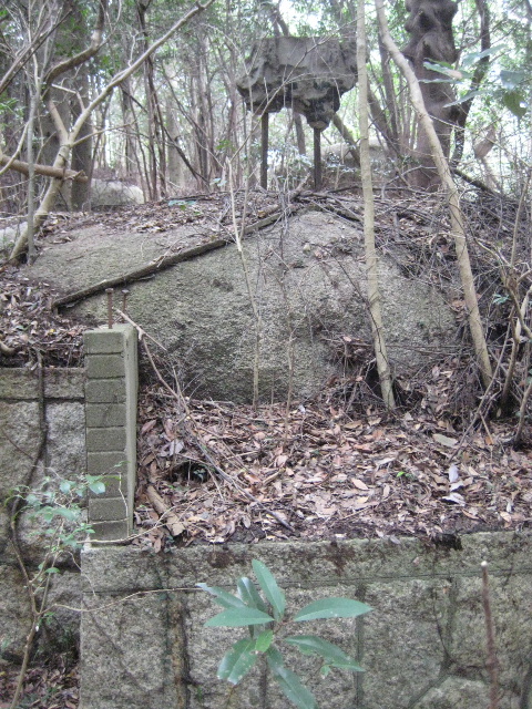初回踏査のときから気付いていた鳥居か何かの基礎痕跡。