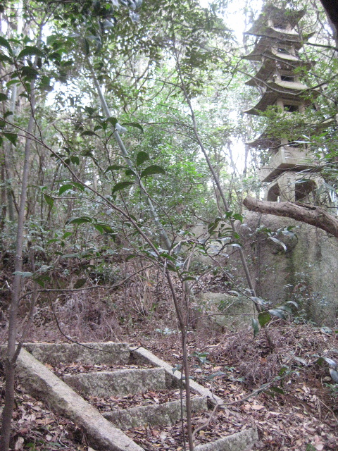 法篋印塔や子安薬師如来像のある広場に向かう3組の石段路。