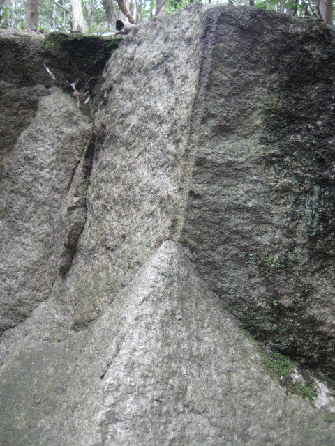 明白な遺構ではないがかつて人の手が加わった形跡のある岩を見つけた。何となく不自然な形の岩で、しげしげ眺めているうちに気付いたのである。