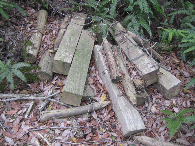 この角に切断された角材が放置されていた。