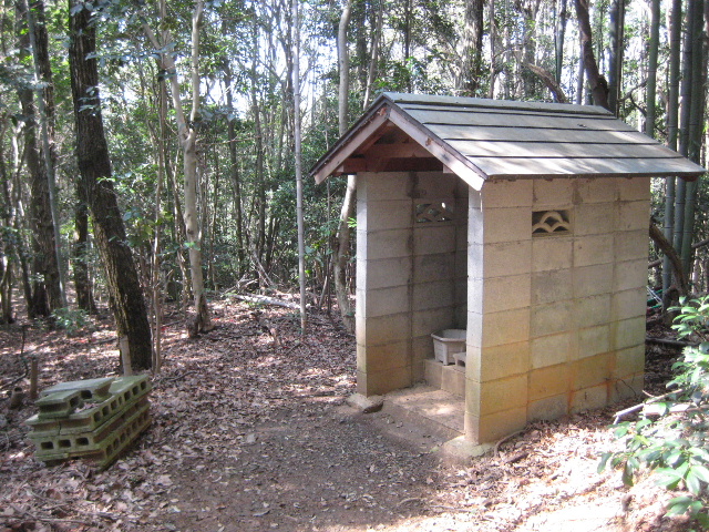 八十八箇所と呼ばれる祠が乱立する急な坂を過ぎると道は平坦になる。その先で最後の祠の一つに出会う。
