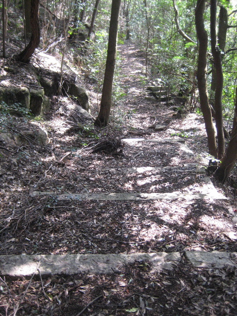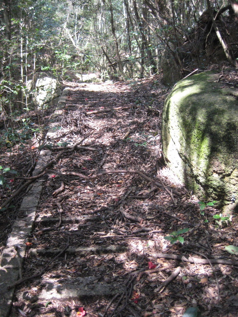 道中は周囲の眺めが殆ど効かない。やがて八十八箇所の坂で稼いだ高度を少しばかり吐き出す下り坂に向かう。