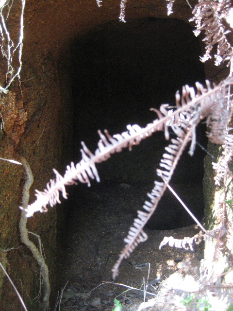 まず、土砂などの崩落によって自然発生した穴でないことだけは確かだ。人の手によって何かの目的によって掘削された穴である。導水や人馬の通行に供する隧道目的でもなさそうだ。この穴の方向に真っ直ぐ掘削しても何処か重要な場所へ通じるあてがないからだ。