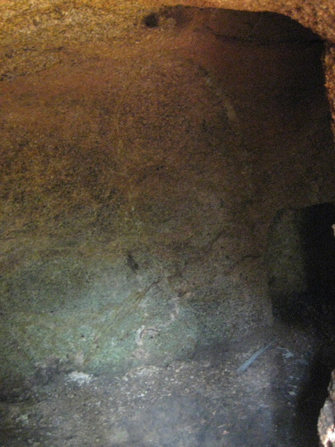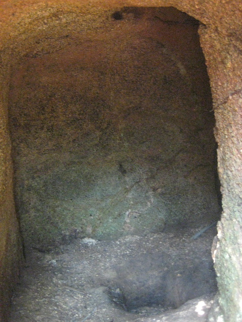 想像通り右側の穴は入ったすぐ先で左に折れていた。穴の正面にはやや小さく長方形状に掘り取られた部分があり、これは先ほど左の穴から観たものと同一である。このことから左右の「鼻の穴」は繋がっていることが分かった。