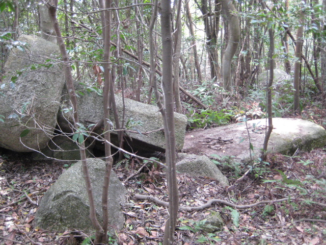それにしてもこの岩自体の形状がおかしい。アルファベットのTを横倒しにしたような形になっている。自然の岩がそんな形をしている筈もないことは気付くべきだったのだが、当初はそこまで想像が働いていなかった。
