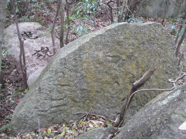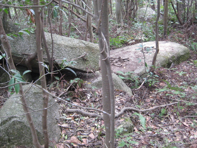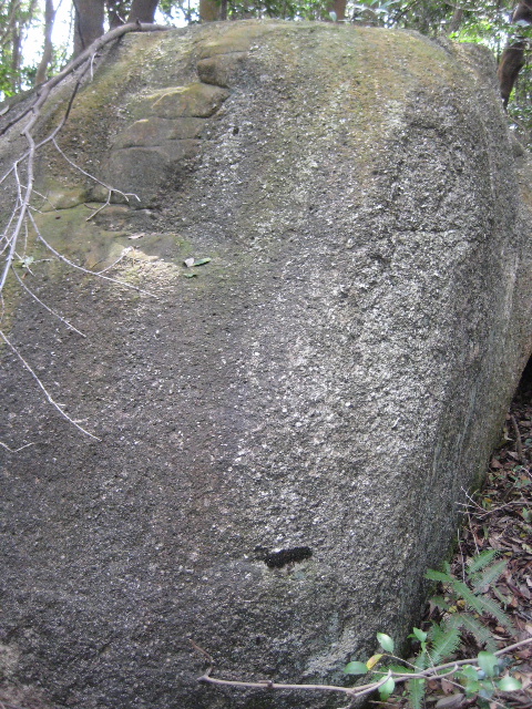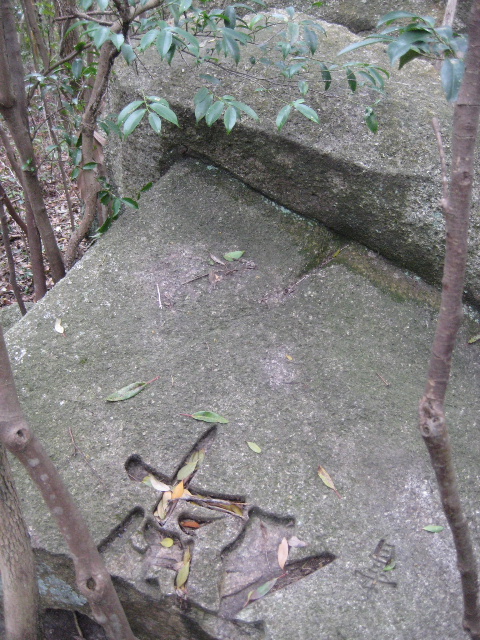 木の葉が積もっていたが、岩自体も平らに成形されている。あるいはそのような岩があったためにここを据付場所に選んだのかも知れない。