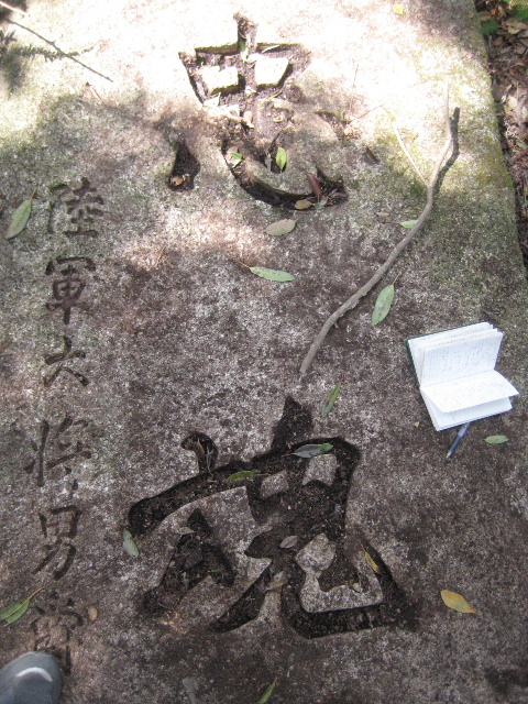 K氏が一体どのような経路でここに到達し石碑を見つけることができたのかは分からない。最初は妙に平べったい大きな石が倒れていて忠魂碑の最初の2文字は完全に木の葉で隠されていたという。しかし割れて浮き上がっている「碑」の文字の下半分が露出していることから石碑であることに気付いたようだ。