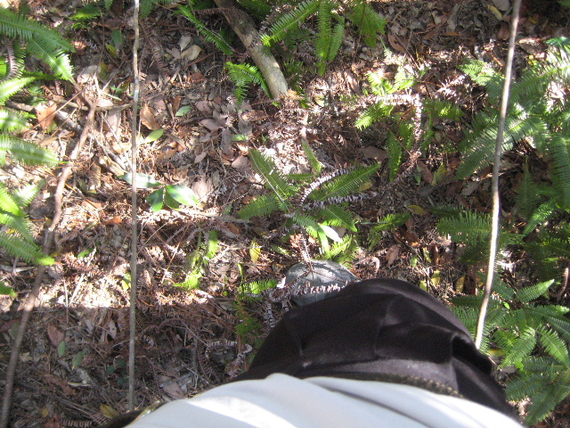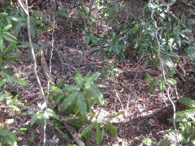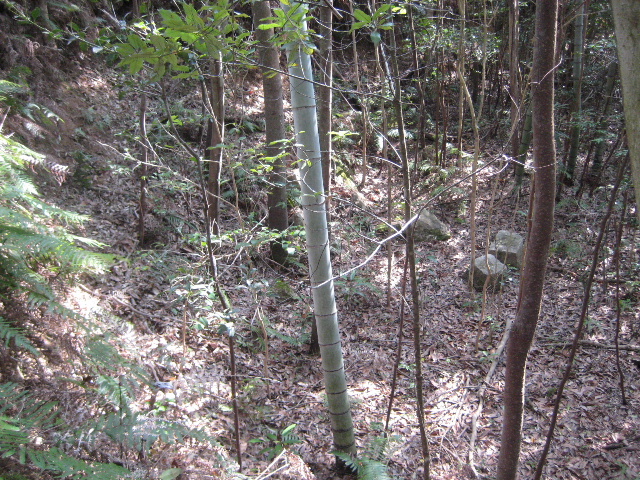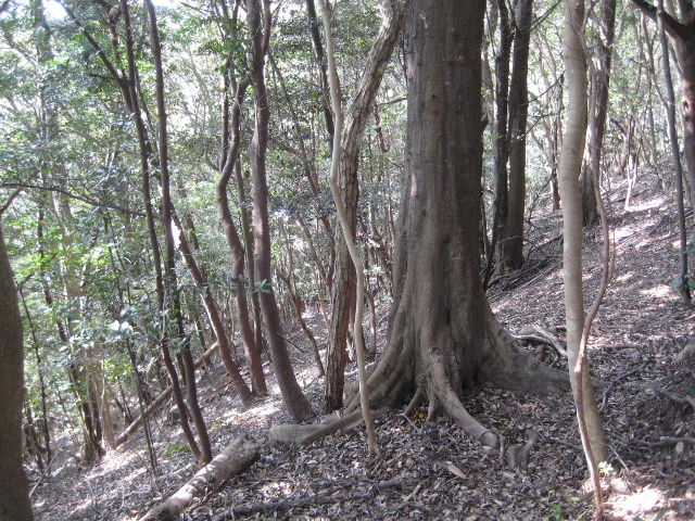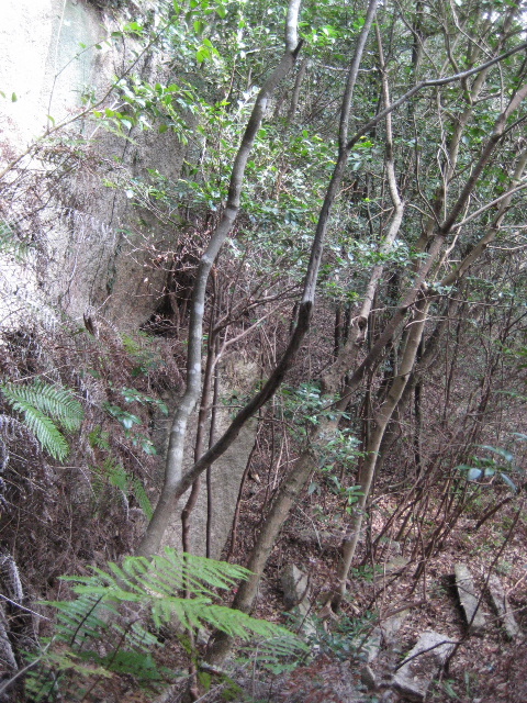 元から道がなかった状況に呼応してこのピーク付近には何の人工物も観られなかった。歩き回るのも困難なほどの藪なので、そこには元から何もなかったと結論づけてメインの園路の方に向かって斜面を下りた。