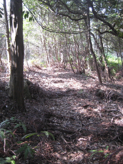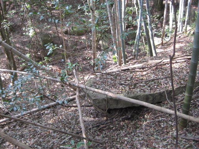 平地の先端には間知石数個が転がっているだけだ。しかし家一軒建つ程度の広さがあり、昔は何かがあったような匂いがする。