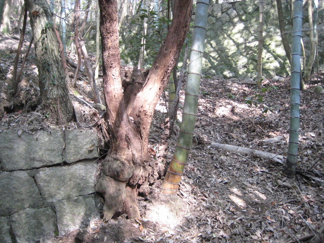 沢の一番奥にある石積みの規模は公園内でもトップクラスだ。これほど大規模の石垣を築いたのは、その上に広い土地を確保して何かを建てるためだったのでは…と想像されてしまう。