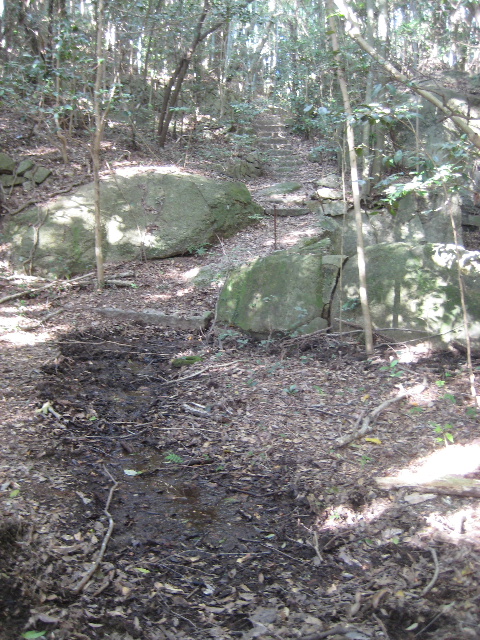 メインの園路から分岐する殆どすべての小道も同様で、石段が完全に埋もれて判別しづらい場所もあった。