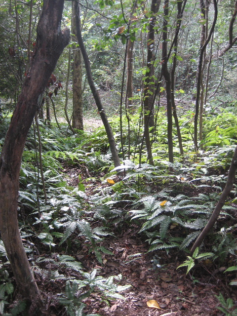 足元には低いシダ類が這っているだけで、クモの巣さえ気をつければ突っ切れる藪だ。