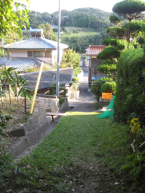 民家の庭先では近所の人が世間話をしていた。いきなりヌッと現れると驚かせてしまうので、遠くから足音をさせて前を通り過ぎた。こんな山道から降りてくる人間などそうそう居そうにないと思われるので…