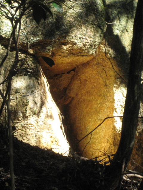すぐ傍まで行って確認した。残念ながら自然の岩の空隙が日光を反射しているに過ぎなかった。