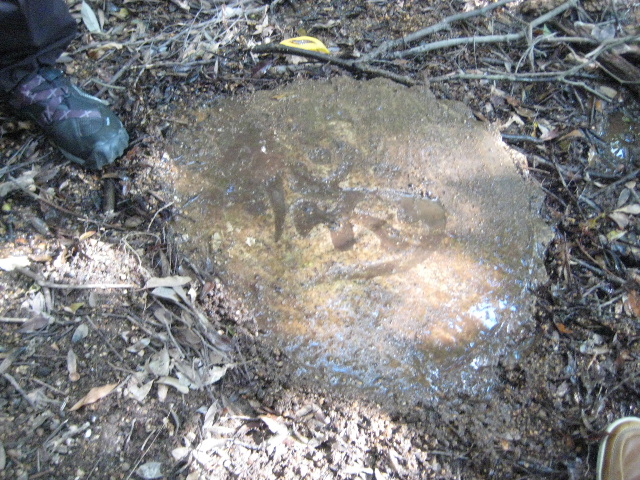 この石盤は未だに完全には掘り出していない。見かけ上石盤と呼んでいるだけで、この下がどれほど深く埋まっているかまだ分かっていない…と言うか、畏れ多いのと道具がないために掘り起こさずにいる。大量の土砂が溜まっているので、すべて浚えたら何か特殊なものが出て来るのはほぼ確実とさえ考えている。