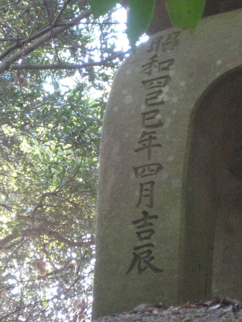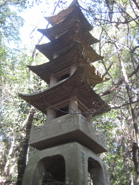 [4]」他方、五重塔に使われている石材は粒かかなり細かい感じがする。実のところ同種の岩で粘土などの比率が異なるのかも知れないが、少なくともこの近辺で産出する岩とは思えない。今思えば、この石材は白岩公園の中にも数ヶ所存在する祠に安置されたお大師様の材質に酷似している。