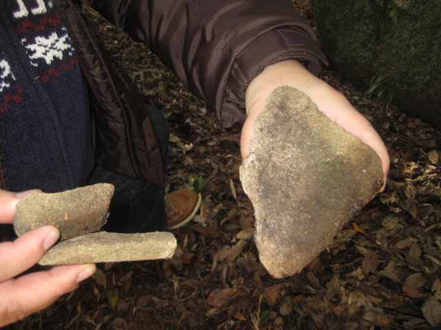 M氏も五重塔の近くから砂岩説を裏付けるものを見つけ出した。