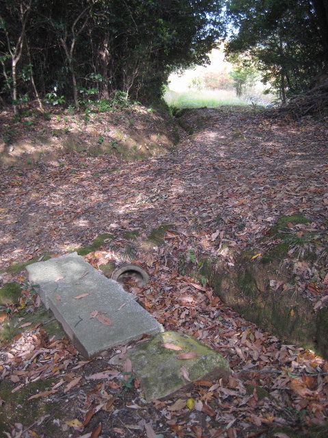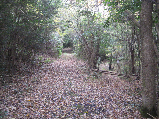 思えばこの経路は中山観音駐車場へ戻るとき数回通っただけで、ここから登るのは初めてだった。まして徒歩ならちょっときつめの登山道に過ぎないところが、今回は自転車の押し歩きである。かなり厳しい重労働だった。竹藪を過ぎると高台に出る。この辺りで常盤用水路のNo.3隧道坑口が見える場所を通る別の経路と合流する。