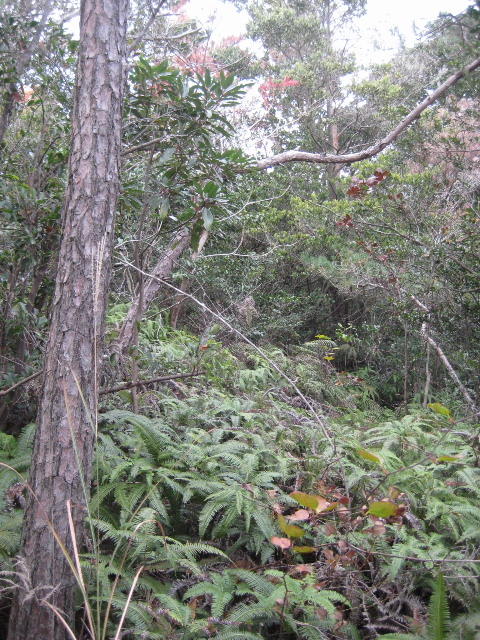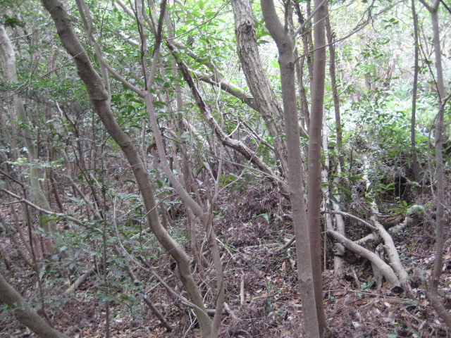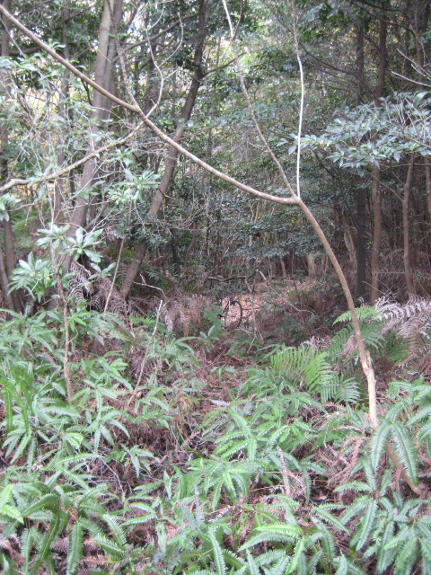 この辺りは割と日照も見込める斜面であり、そのためにシダを始めとする雑木が旺盛ならしい。