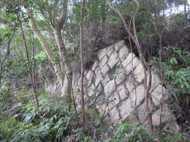 動き回るのも困難な程度に雑木で覆われた地に、石積みだけが遺っている…ありがちとは言え何ともシュールな光景であった。