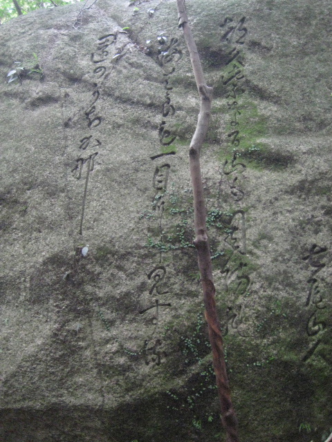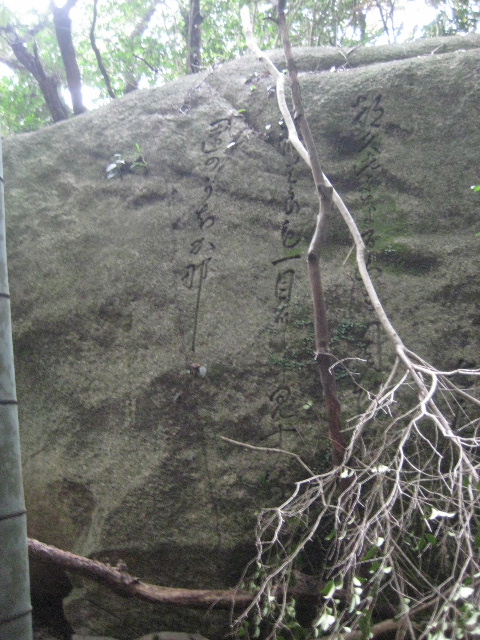 しかし八丁岩には当初からこの1首しか刻まれなかったように思われる。31文字を来園者の目に触れるよう刻みつけるなら、それなりの平らなスペースが必要だ。八丁岩の側面でそのような部分が見当たらないからだ。