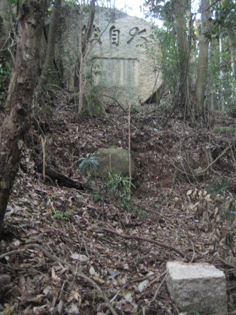 八丁岩の短歌が刻まれた近くにテーブル状の岩が据えられていた。木の葉が積もっていたので今まで気付かなかった。