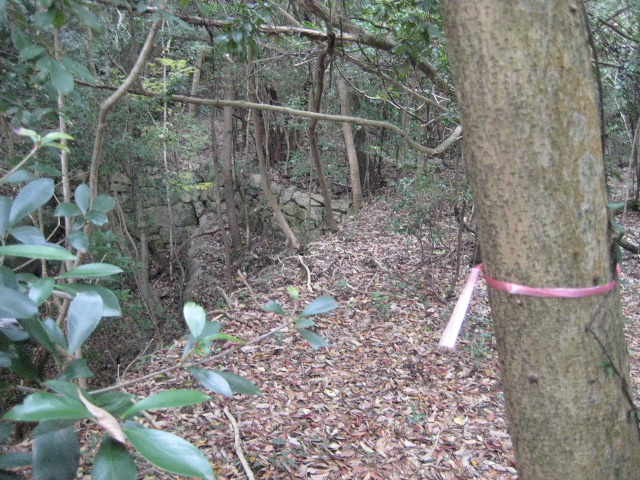 道の部分だけ空けて石積みを直角に曲げていると考えられる。