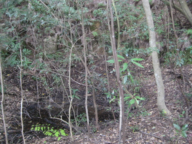 この平場の一番奥には小さな窪地があり、溜まり水ができている。