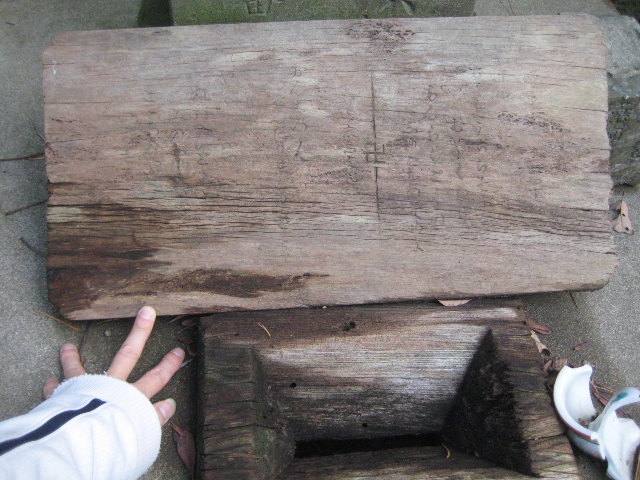 裏面は全体の半分以上が水に濡れ続けていたために朽ちていた。