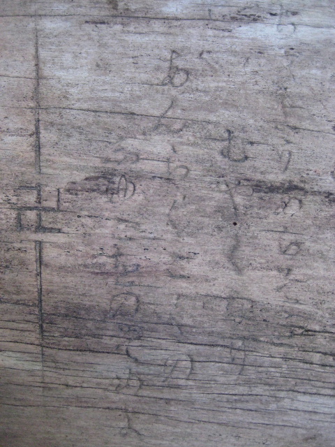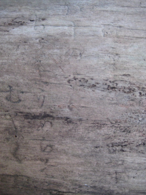 裏面と比較してみよう。こちら側は水に濡れる期間がまだ長くないせいか細かな繊維質部分も保持されている。そのため刻まれた文字の縁まで明瞭だ。