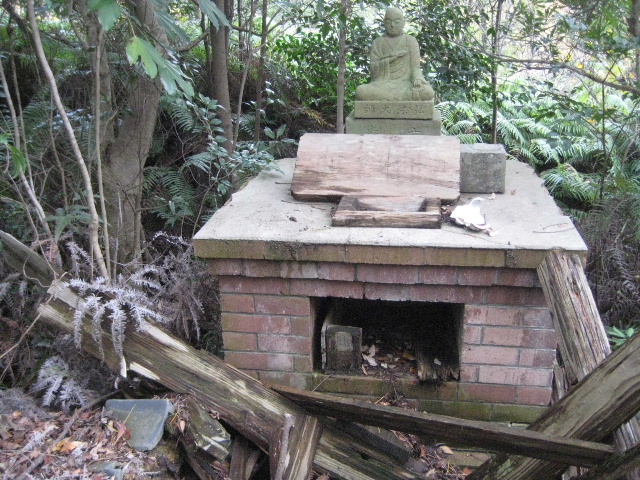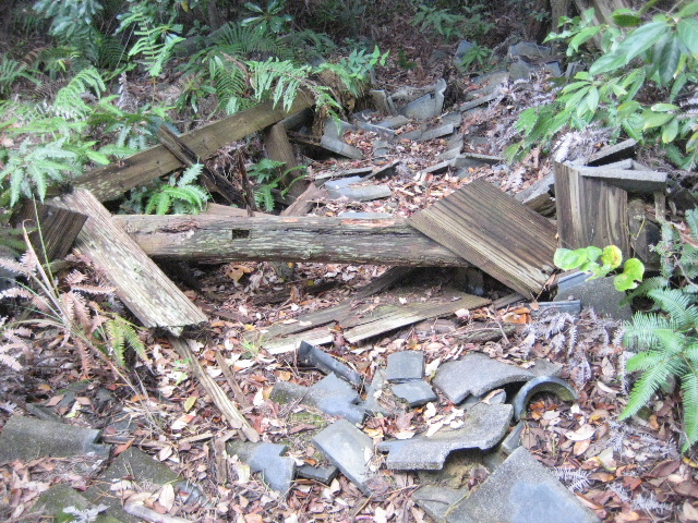瓦は粉々になり、御堂を支えていた梁や柱も倒れたまま朽ちている。その上に木の葉が積もっているので、全部取り除けば下敷きになっている何か重要なものが現れるかも知れない。