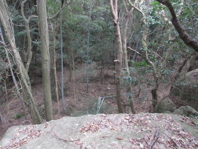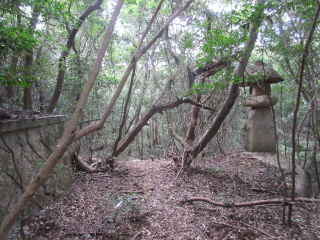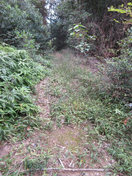 しかし現地へ到達する以前に挫折してしまった。ピークなので湿気が少なくヤブ蚊は居なかったが、クモの巣は相変わらずだった。それに秋口ならまだすべての草木が枯れてはいない。やはりこういったエリアへ踏み込むには年が明けてからでないと無理のようだ。そこで一旦引き返し宝篋印塔の更に西側、かつて宇部興産(株)窒素線の鉄塔があった場所へ行こうとした。