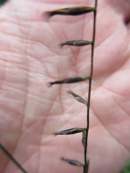 ズーム撮影。こういった具合に茎に対して種子が垂直かつ同じ方向にツンツンと突き出ているのが特徴だ。
