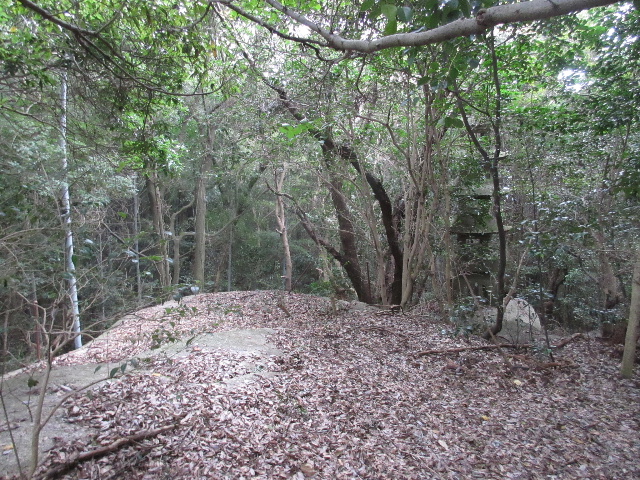 平場の奥は地山と段差がついていて、この場所を確保するために削ったらしい。そこから奥に道はついていないようだった。