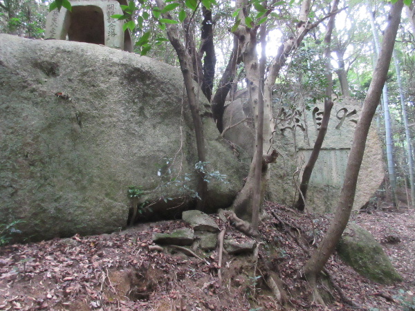 石灯籠は大きな岩の端に寄せて設置されていて裏側へ回り込むのが酷く困難だったのだ。