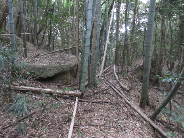 相変わらず竹の侵入が酷い。見た目は風流だし地山の保水力にも恐らく貢献しているだろうが、遺構類に対しては破壊的に働く。ある程度間引いても良いのでは…