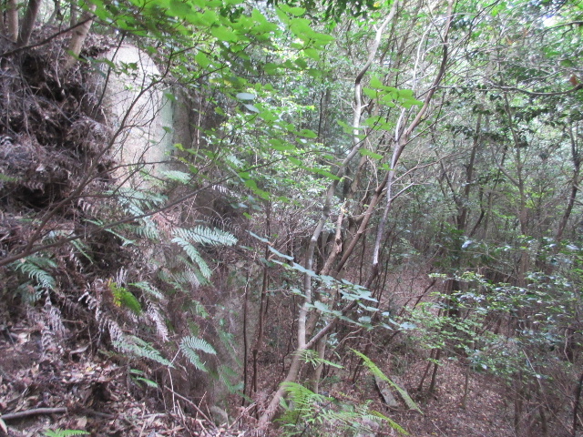 初めて訪れたときはこの下から崖地の上、写真では左側に見える斜面を進んだのだった。