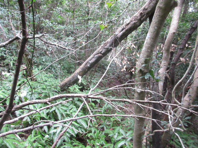 直線距離で30m程度だろうか。しかし体感的にはかなり長く感じられた。元から道がない藪だけに木の枝を振り払い危害を加えるイバラチェックしながらの進攻なので手間と労力を要した。