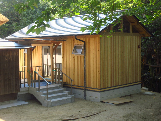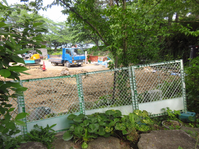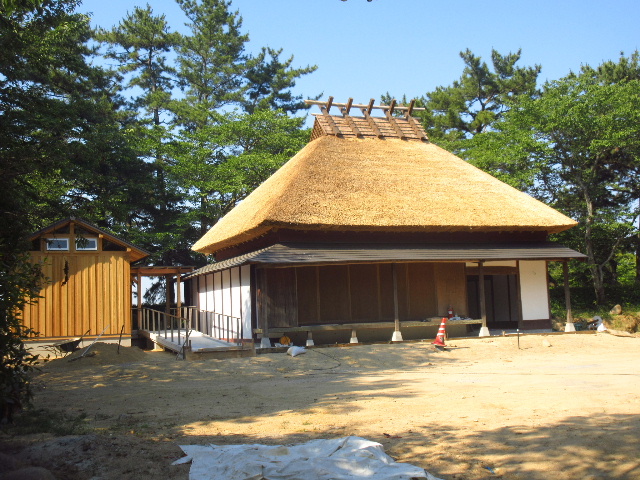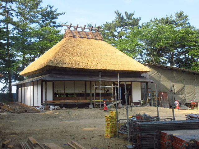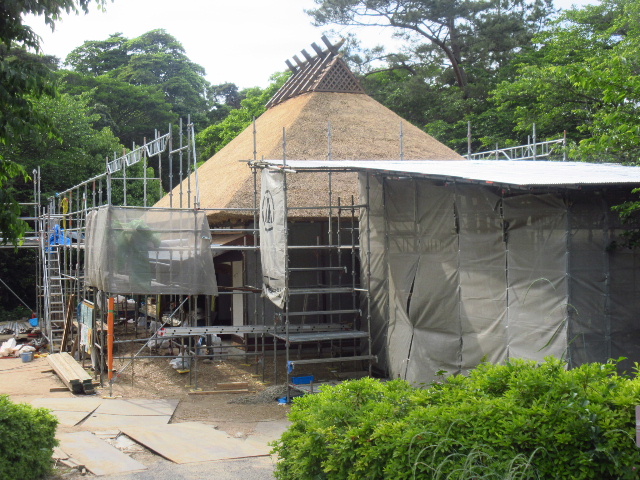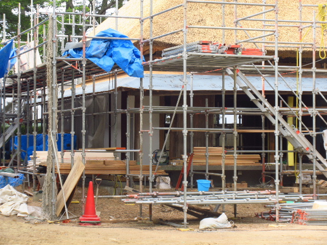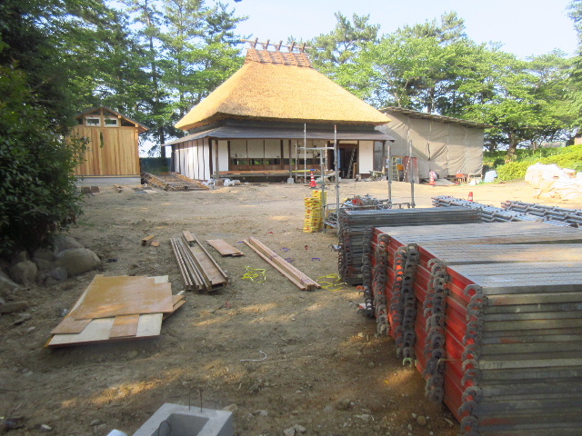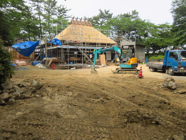 古い茅葺き材などは片付けられている。真砂土を投入して全体を地上げしているため元あった憩いの家の基礎部分は見えなくなっている。