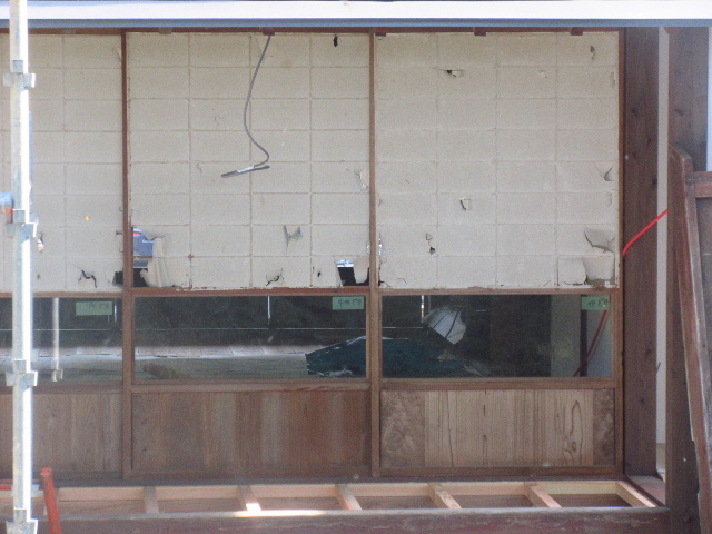 破れが目立つもののガラス部分や腰板はそれほど傷んでいない。