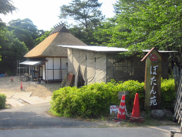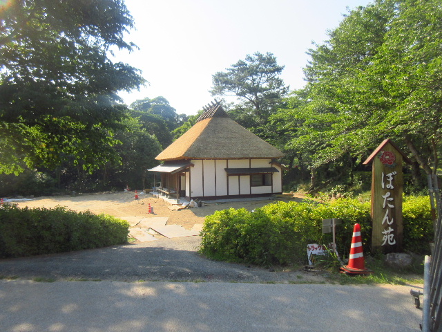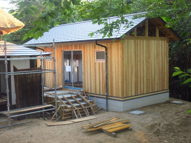 これで庭やロックガーデンとの取り合い、周遊園路からの階段やぼたん移設などを除いた建屋関連の工事はほぼ完了した。