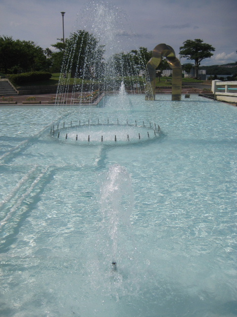 最後に訪れただけにもう喉カラカラ、汗びっしょり…この涼しげな噴水と常夏をイメージする波紋が何とも誘惑的だった。