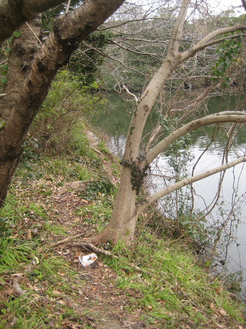 そうは言っても本土手の用水路と夫婦池の間は殆ど護岸まで笹藪が押し寄せており、すべての汀を調べるのは不可能だった。それで藪が薄くて接近できそうな場所だけあたってみた。