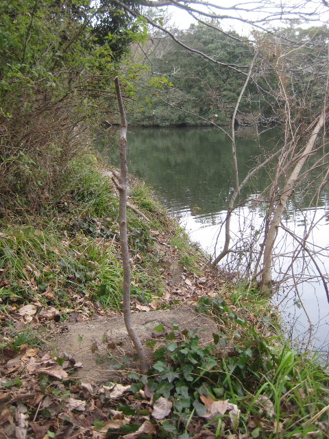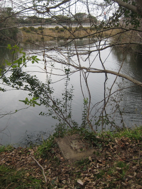 この基礎だけでなく、そこから汀へ降りる階段のようなものが見えるだろう。