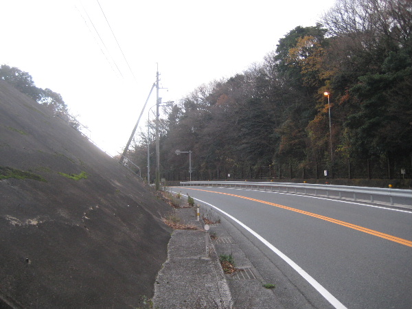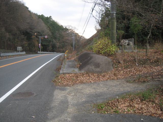 道路には線形改良の痕跡が窺える。かつてはもっと大きなカーブで、側面の切り通しも今より狭く切り立っていた。