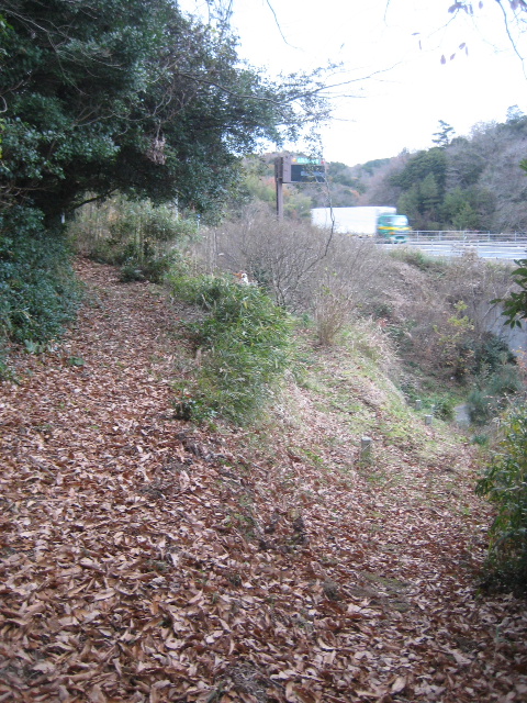 車で通っていたときには全く気づかなかっただけで、表示板とうどん店の間に山手へ分け入る道があった。