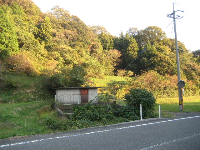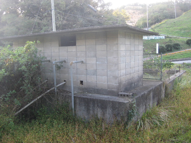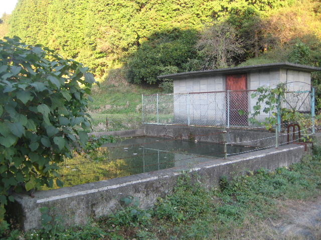 県道側に四角い貯水槽があり、隣接してポンプ小屋っぽいものがある。