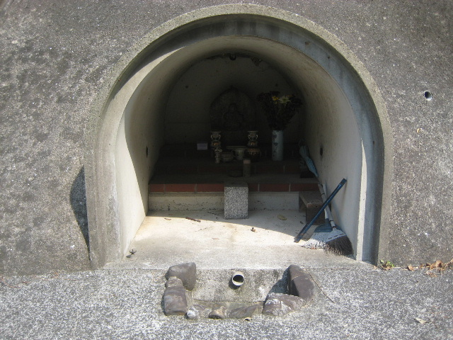 斜面に埋め込まれた祠だ。恐らく昔からこの場所にあったのかも知れない。もっともかつては昼間でも暗い堀割だったので、幼少時代には全く気づかなかった。